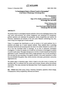 “A Sociological Study of Rural Youth in Karnataka: (Case Study of Hosadurga, Chitradurga Dist.)”; *Dr. Chandrashekar, Professor Dept. of P.G. Studies and Research in Sociology, Shivamogga Dist, Karnataka; **Prof. Shivanna H.S, Research Scholar, Govt. First Grade College, Hosadurga, Chitradurga Dist, Karnataka