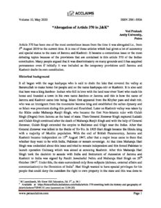 ← “Abrogation of Article 370 in J&K”; Ved Prakash, Amity University, Patna
