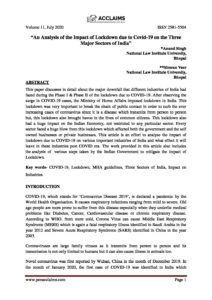 “An Analysis of the Impact of Lockdown due to Covid-19 on the Three Major Sectors of India”; *Anand Singh, National Law Institute University, Bhopal; **Simran Veer, National Law Institute University, Bhopal