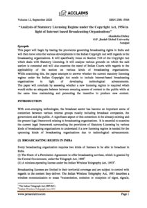 ← “Analysis of Statutory Licensing Regime under the Copyright Act, 1954 in light of Internet based Broadcasting Organisations”; Akanksha Dubey, O.P. Jindal Global University, Sonipat