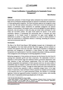 “Forest Certification: Commodification for Sustainable Forest Management”; Mansi Bachani