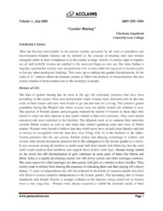 “Gender Biasing”; Cinchana Jagadeesh, University Law College