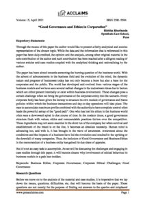 “Good Governance and Ethics in Corporation”; Rishika Kharbanda, Symbiosis Law School, Pune