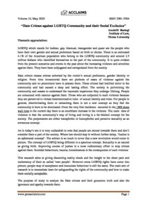 ← “Hate Crimes against LGBTQ Community and their Social Exclusion”; Anukriti Rastogi, Institute of Law, Nirma University
