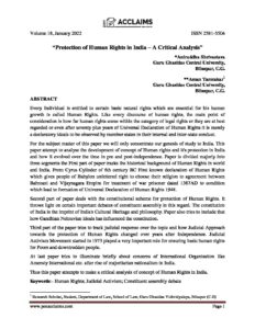 “Protection of Human Rights in India – A Critical Analysis”; *Aniruddha Shrivastava, Guru Ghasidas Central University, Bilaspur, C.G.; **Aman Tamrakar, Guru Ghasidas Central University, Bilaspur, C.G. [https://doi-ds.org/doilink/02.2022-98172933/P18/021/006]