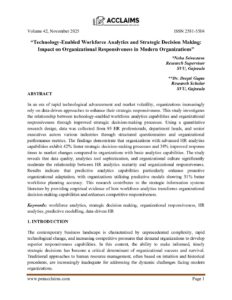 “Technology-Enabled Workforce Analytics and Strategic Decision Making: Impact on Organizational Responsiveness in Modern Organizations”; *Neha Srivastava, Research Supervisor, SVU, Gajraula; **Dr. Deepti Gupta, Research Scholar, SVU, Gajraula | [https://doi-ds.org/doilink/12.2025-75688569/P042/025/009]