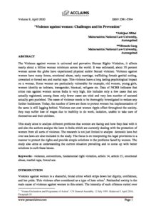 ← “Violence against women: Challenges and its Prevention”; *Abhijeet Mittal, Maharashtra National Law University, Aurangabad; **Himank Garg, Maharashtra National Law University, Aurangabad
